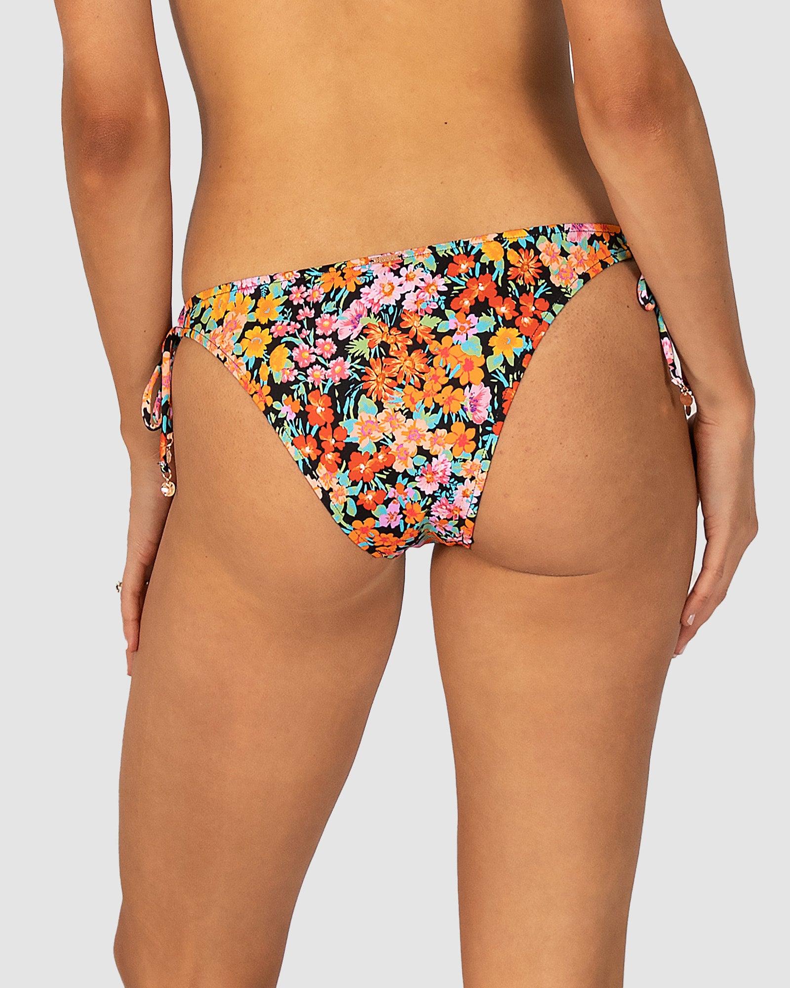 Baku's Biarritz Loopside Bikini Pant features keyhole adjustable and side ties. It has a cheeky rio coverage bottom.