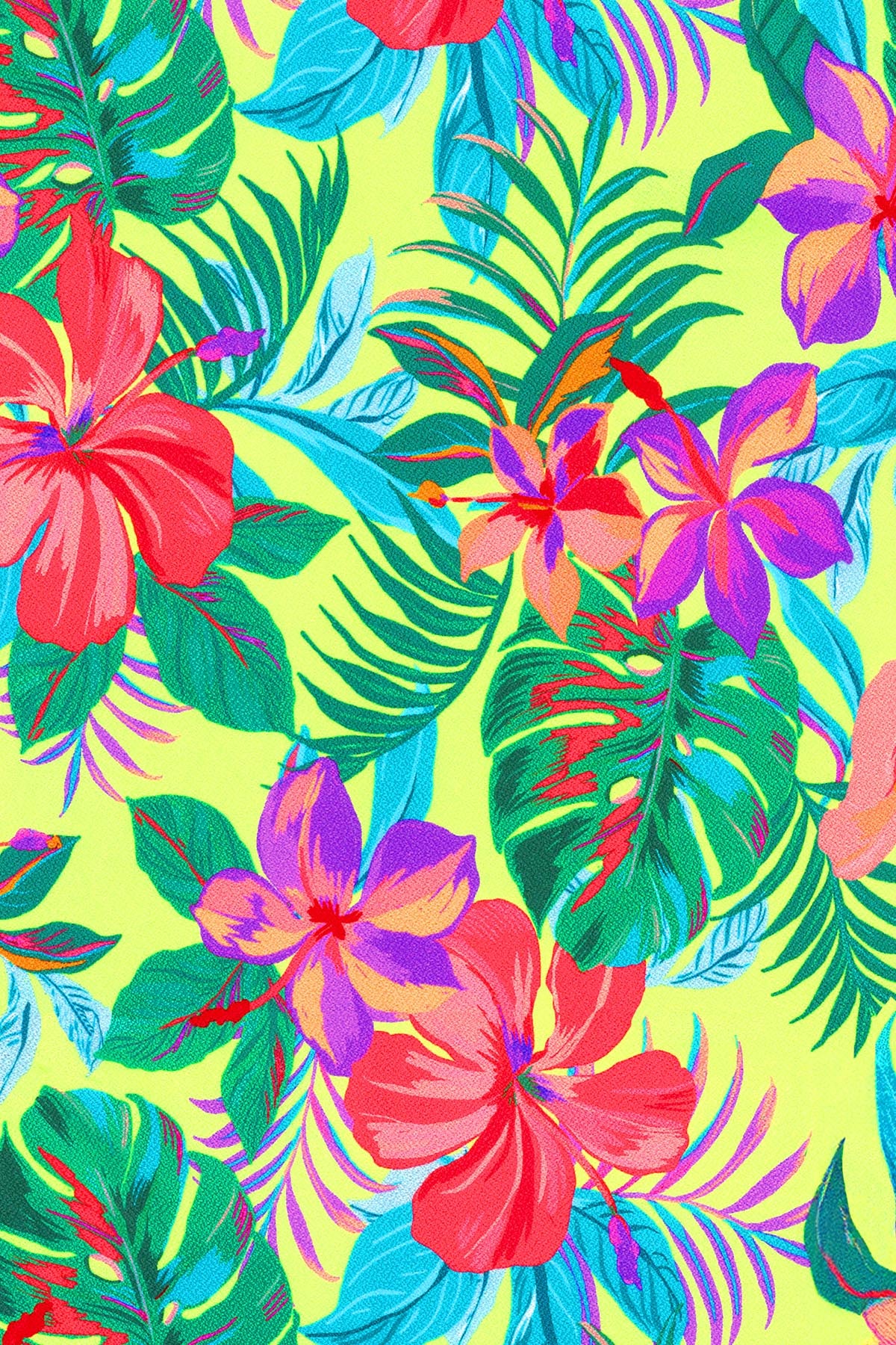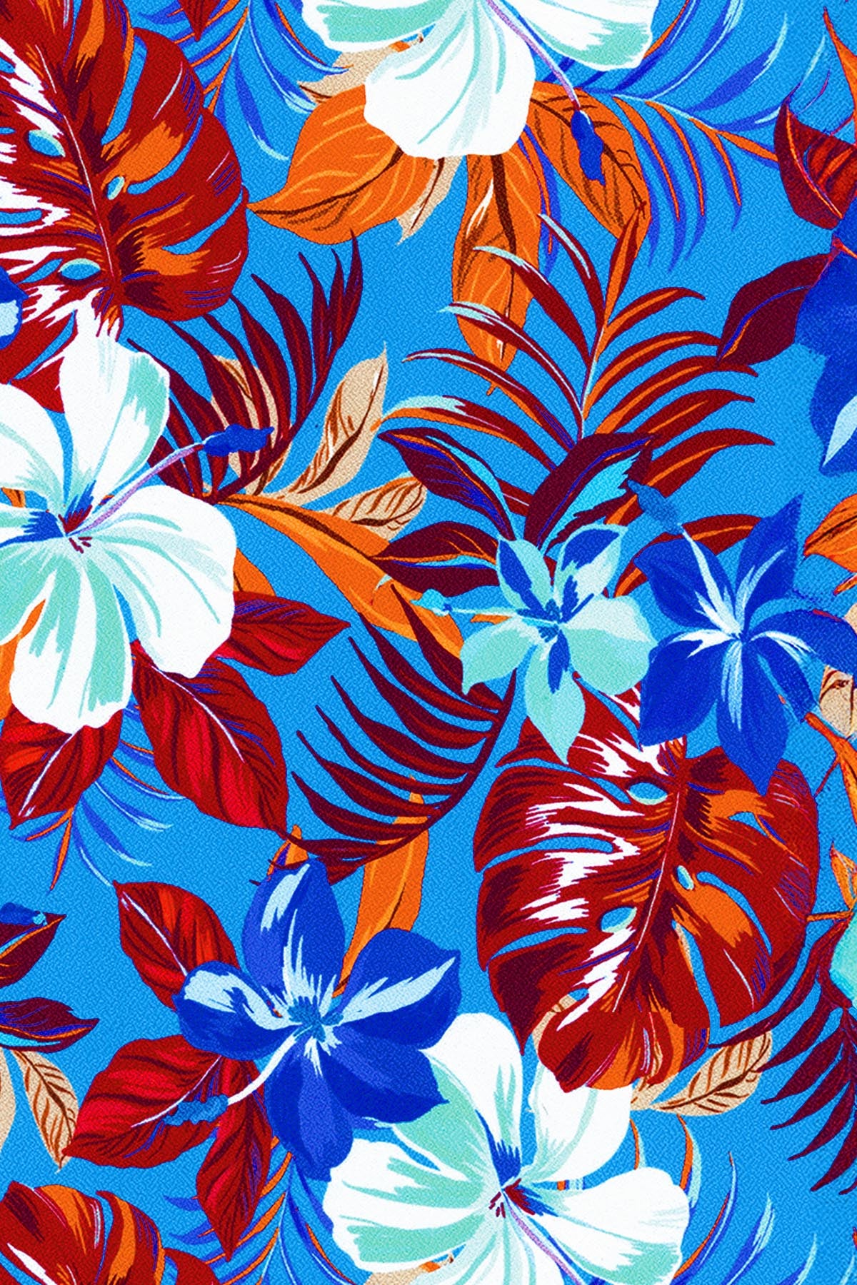Mahalo draws inspiration from the relaxed beauty of the Hawaiian Islands, featuring a bold yet feminine tropical floral on a textured Spanish crepe. Designed for those who love sunshine, sea breezes, and the true spirit of aloha.