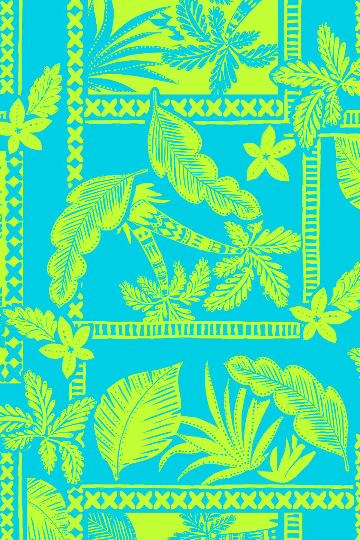 Cruz Del Mar is a bold digital tapestry of abstract palms, blending organic movement with modern artistry to evoke tropical escapism. Available in three colourways—Black for timeless sophistication, Seafoam for sun-kissed vibrance, and Electric for the warmth of paradise.
