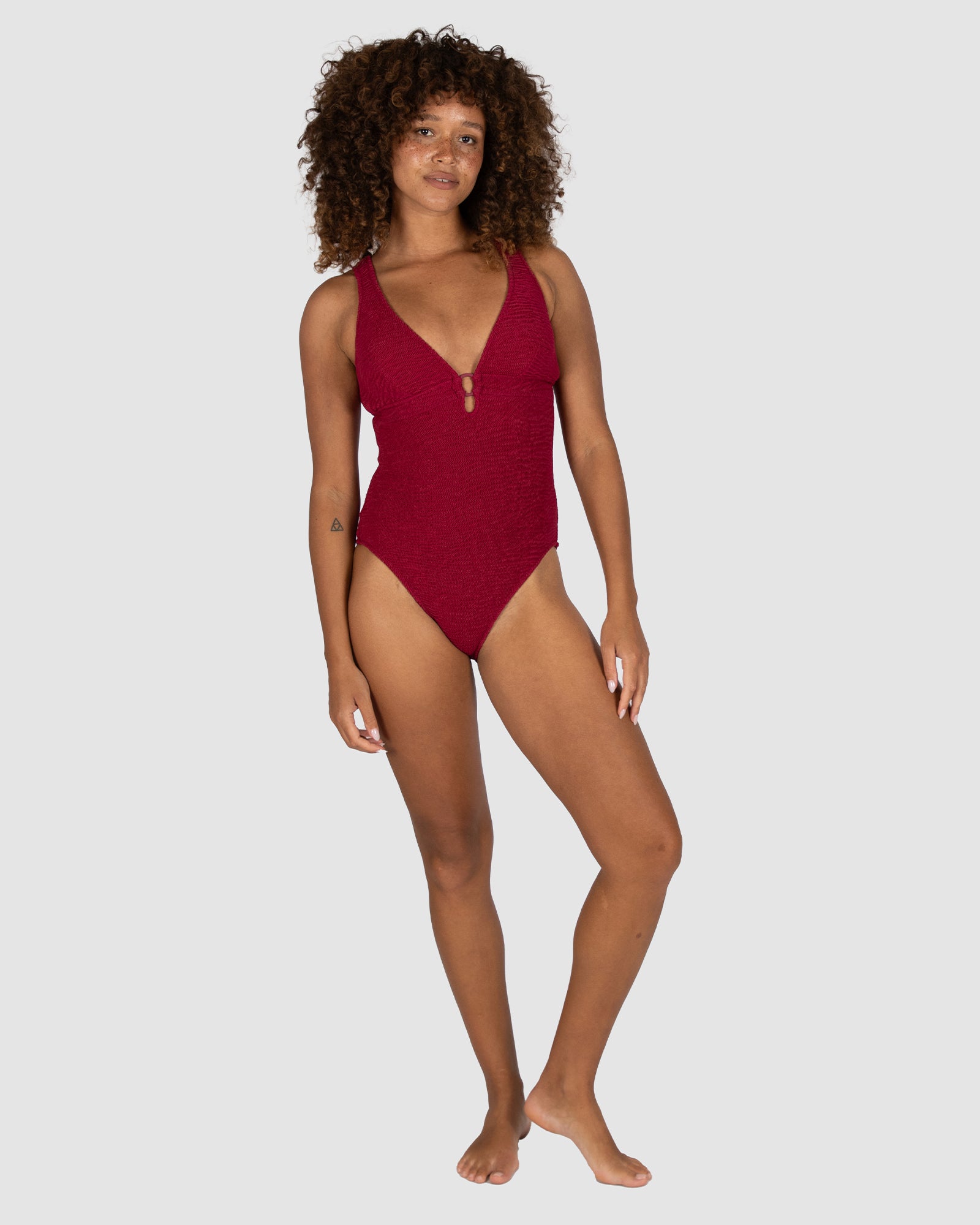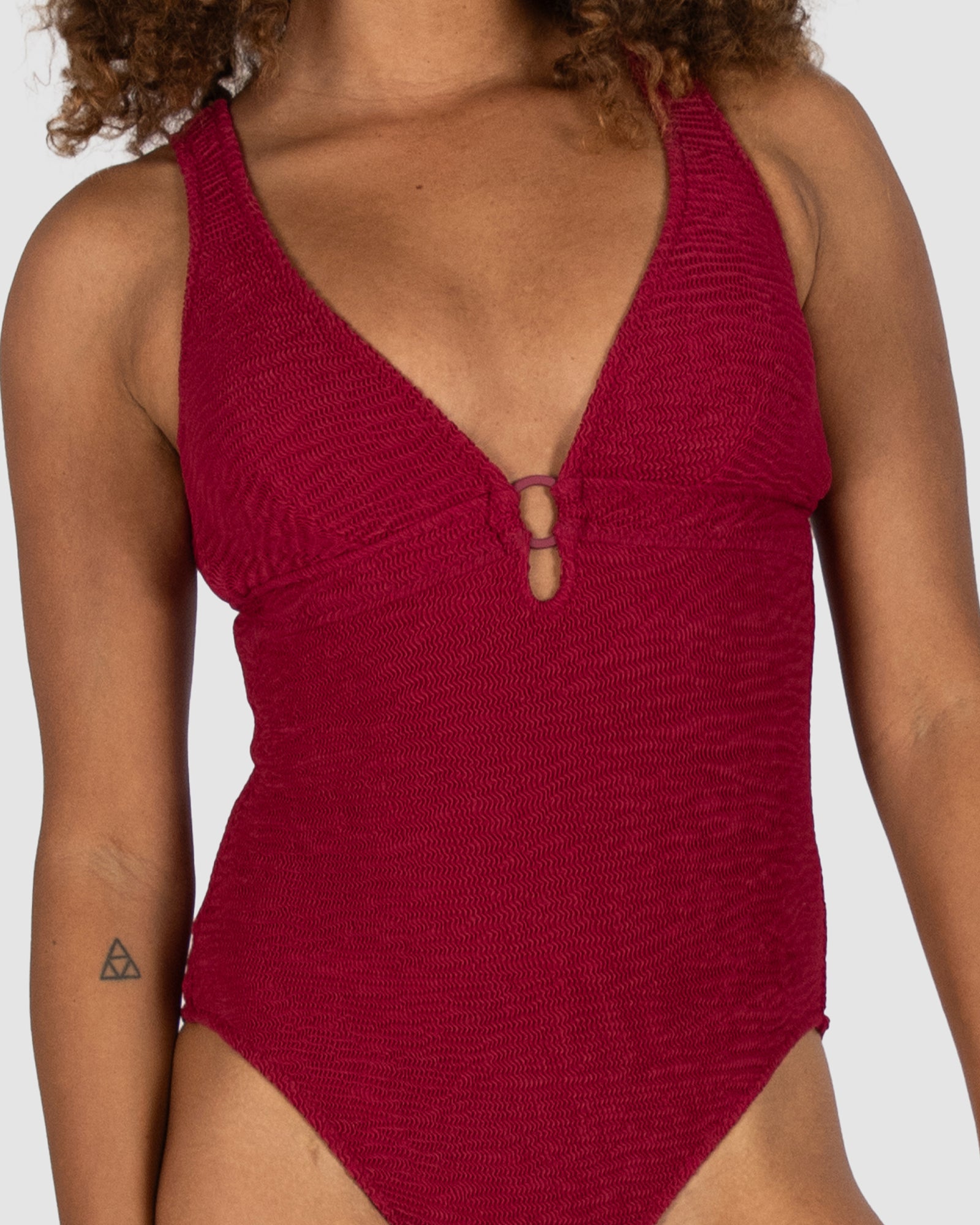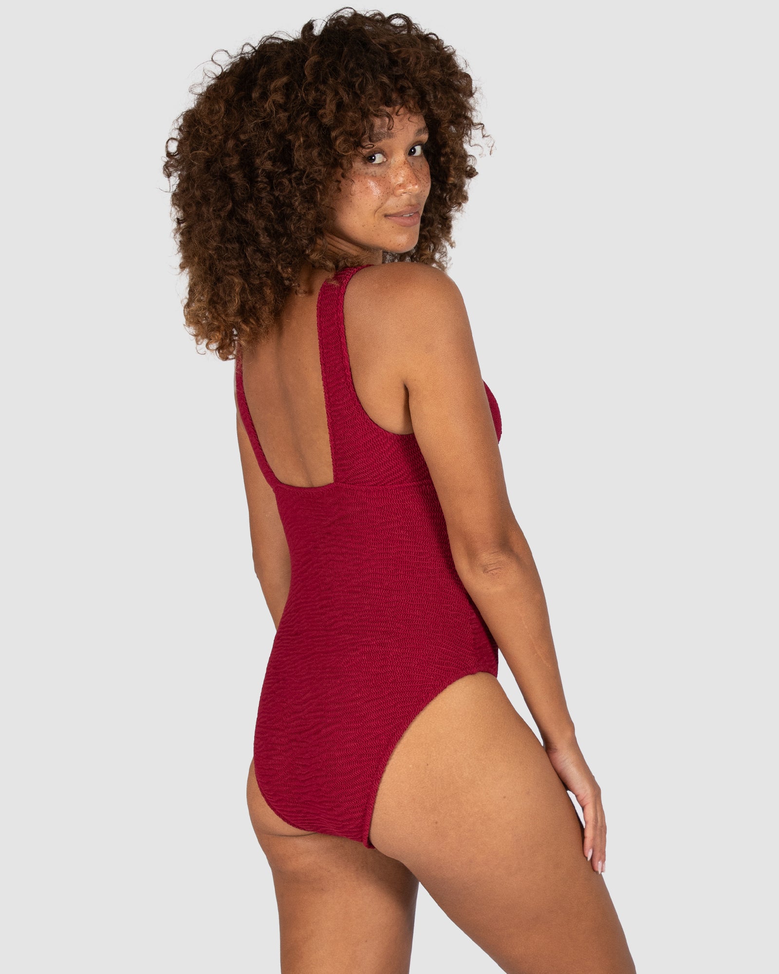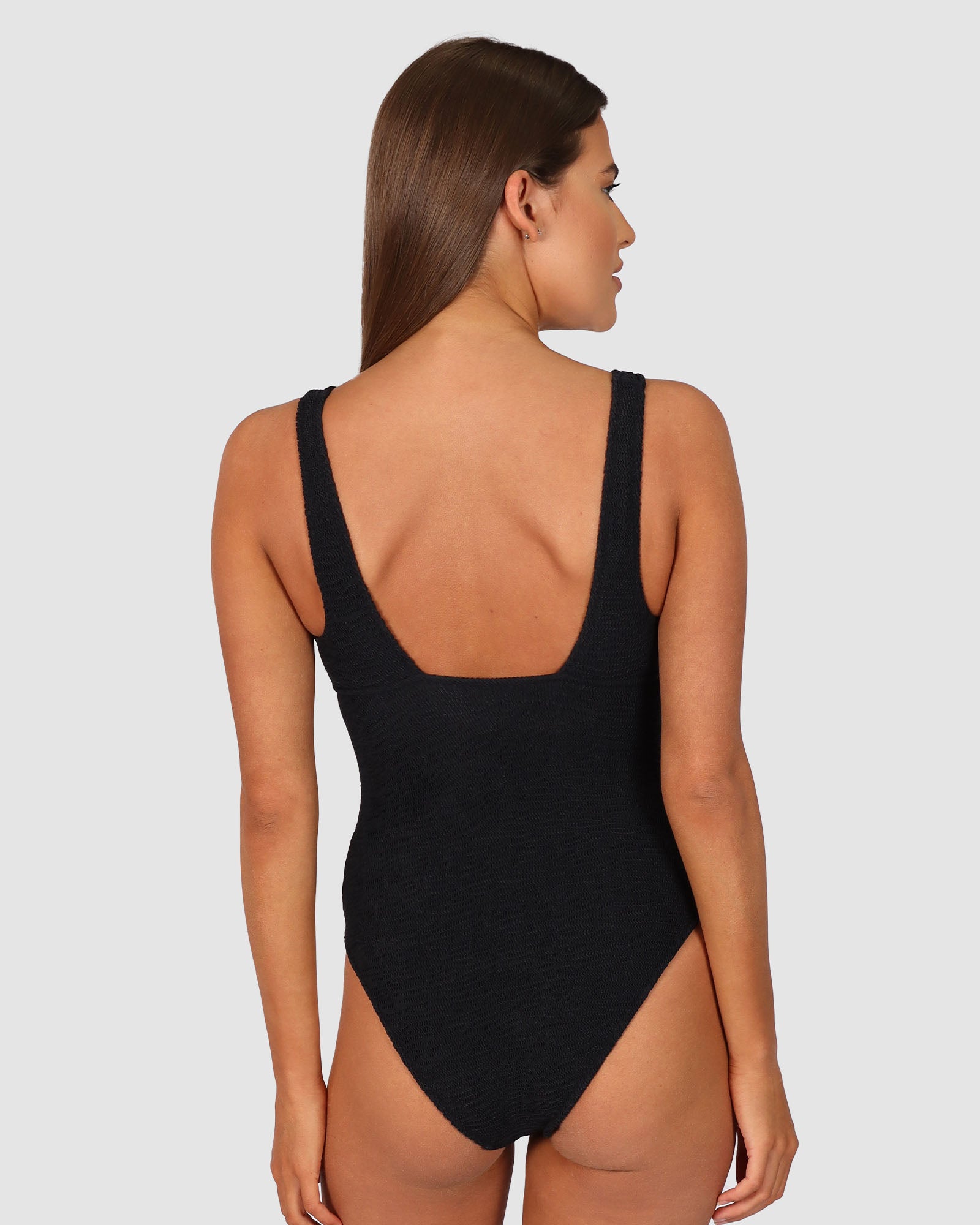 Baku's Ibiza Longline One Piece features a flattering dropped neckline with a ring detail. It also has removable cups, boning and is fully lined. Our exciting new solid Ibiza is crafted from a vibrant and dynamic crinkle fabric with a tactile texture, made in Italy.
