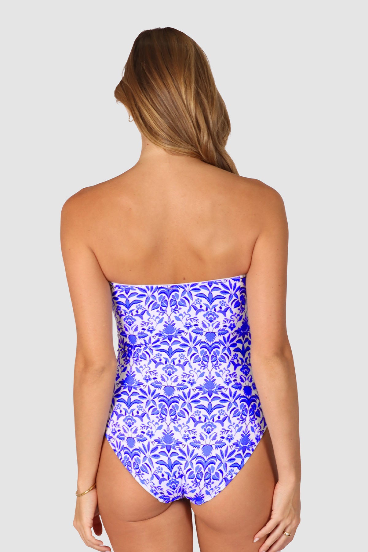 Baku's Free Spirit Bandeau One Piece Swimsuit features moulded cups with an optional neck tie, side boning and tummy ruching across the front.