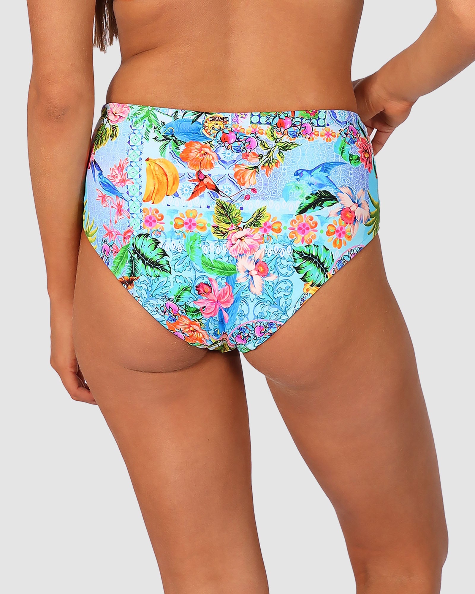 Baku's Sardinia High Waist Bikini Bottom features a high waist with tummy control and a full coverage bottom.