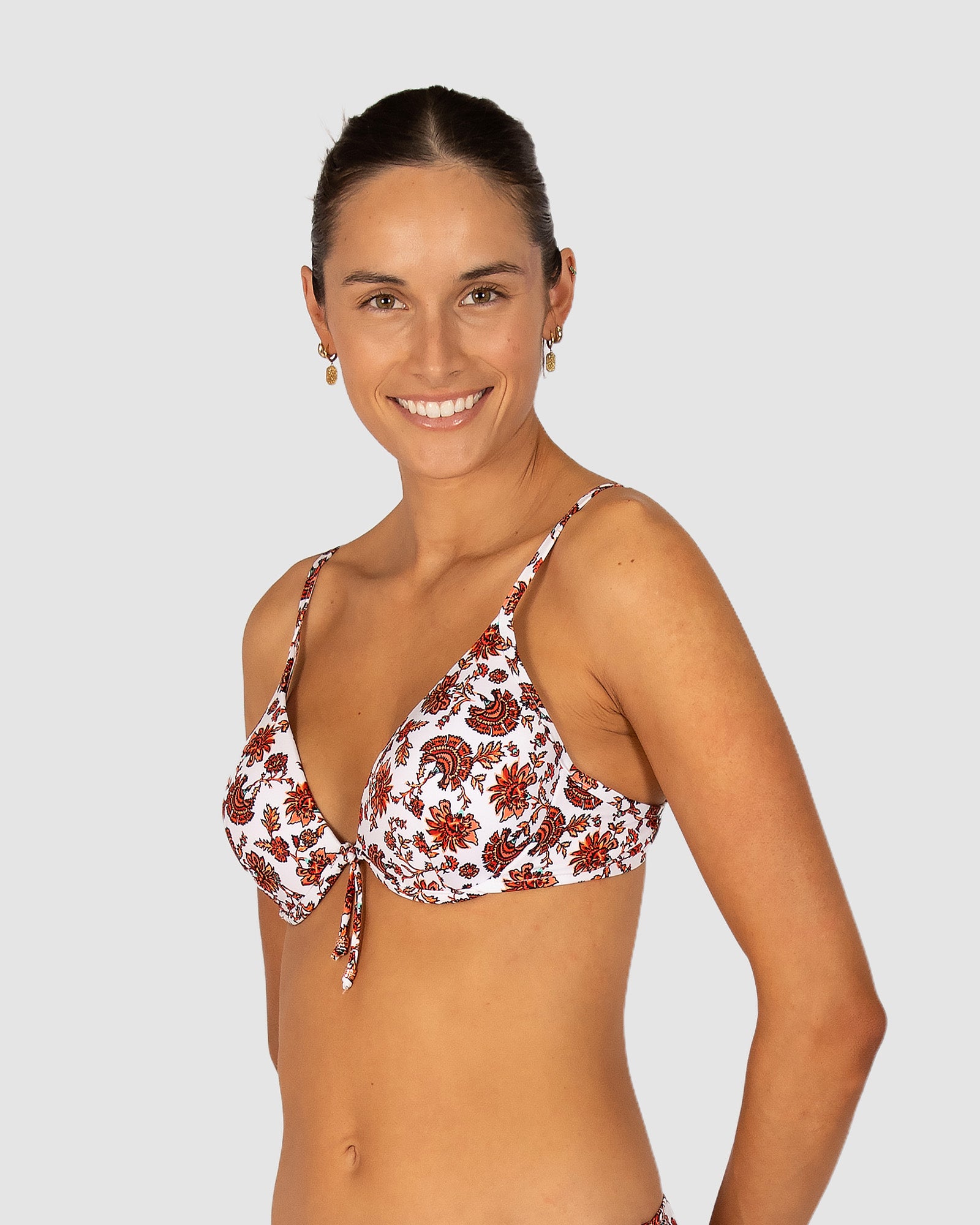 The Flamenco Booster Bra is designed with moulded underwire cups and offers versatility with removable booster pads, allowing for a multi-cup fit that adapts to your preference. Its convenient clip back ensures both support and ease, making it a comfortable and adjustable choice.